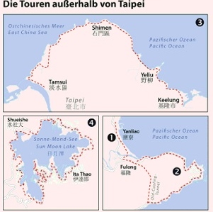 Mit dem Fahrrad durch die zahlreichen innerstädtischen Uferparks, um Taiwans Nordkap, durch den Old-Caoling-Fahrradtunnel und um den legendären Sonne-Mond-See im Landesinneren – das Ringbuch beschreibt elf ausgewählte Touren zwischen 11 und 72 Kilometern Länge.Taipehbesuchern ermöglichen es die Radausflüge, zahlreiche Attraktionen auch abseits der üblichen touristischen Ziele anzusteuern und so ihre Städtereise individuell zu ergänzen.Das Sehens- und Erlebenswerte jeder Tour ist beschrieben und ihr Wegverlauf auf detaillierten Karten dargestellt.Der Autor spricht auch Empfehlungen für die beste Reisezeit, für den allgemeinen Aufenthalt in Taiwan, zur Kleidung und zur Fahrradausleihe aus.Ergänzend zum Radtourenbuch sind die GPS-Tracks aller Touren und zusätzlich für den Radfernweg „Rund um Taiwan“ downloadbar. 98 Seiten.