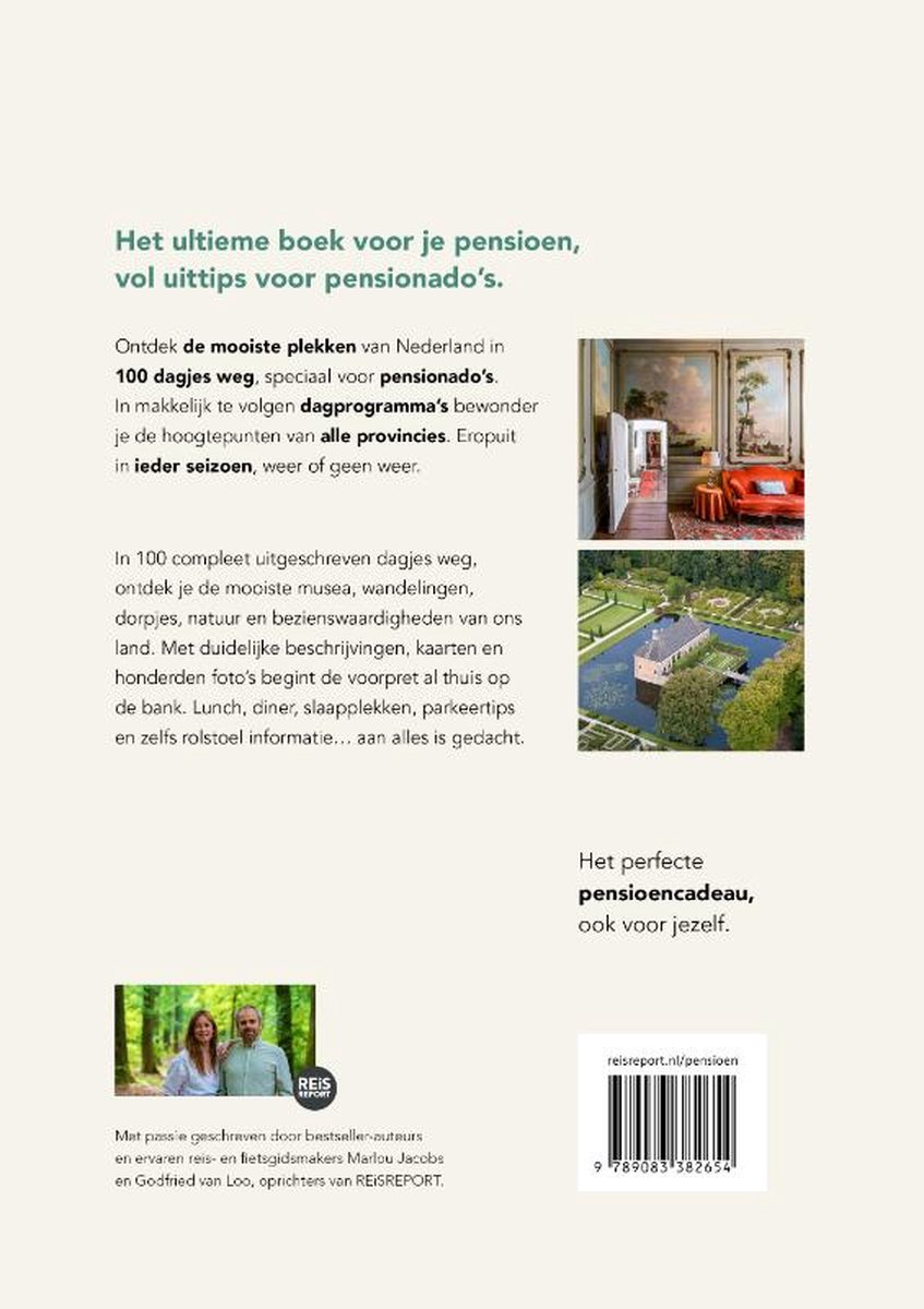 Dit fraai uitgevoerde boek met honderden schitterende foto's, kaarten en uitvoerige omschrijvingen is een prachtig pensioencadeau voor mannen en vrouwen. Op de website www . reisreport . nl is een leuk bijpassend puzzelboekje te krijgen, speciaal gemaakt bij dit boek. Ook is hier nog meer informatie en videomateriaal beschikbaar