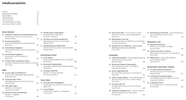 Das SAC-Buch Die Wandertipps des Schweizer Alpen-Club SAC stellt 33 dieser in der Zeitschrift publizierten, ausgezeichnet recherchierten Berg- und Alpinwanderungen vor. Verteilt auf die ganze Schweiz finden sich Tagesausflüge wie auch mehrtägige Wanderungen.