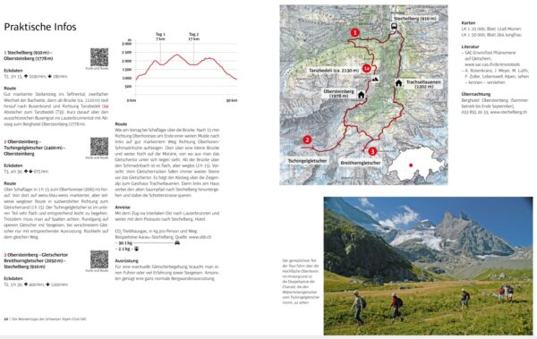 Die Tourenbeschreibungen bieten sowohl detaillierte Informationen zu Routen und Schwierigkeitsgraden als auch spannende Einblicke in die faszinierende Bergwelt der Schweiz.
