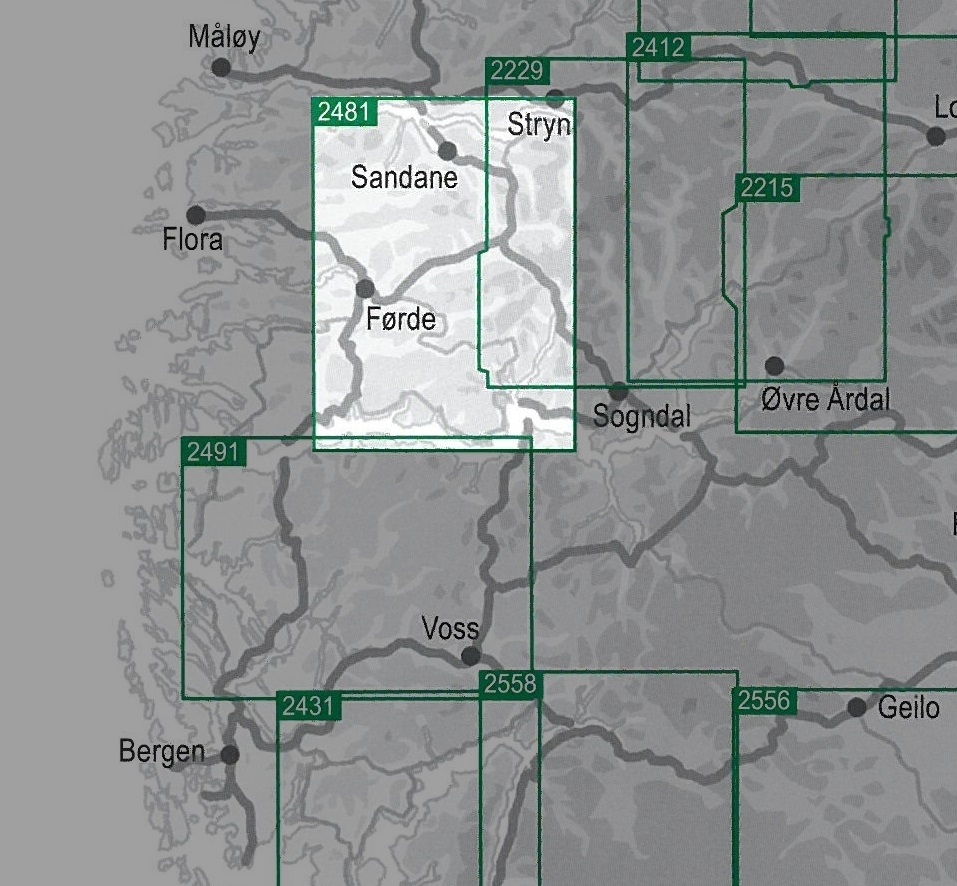 Kaarten en gidsen > Wandelen > Wandelkaarten > Europa > Scandinavië (& Noordpool) > Noorwegen > Midden-Noorwegen > DNT-2481 Indre Sunnfjord wandelkaart 1:100.000