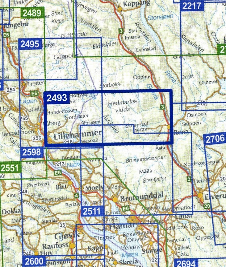 Kaarten en gidsen > Wandelen > Wandelkaarten > Europa > Scandinavië (& Noordpool) > Noorwegen > Zuid-Noorwegen > DNT-2493 Birken | topografische wandelkaart 1:50.000