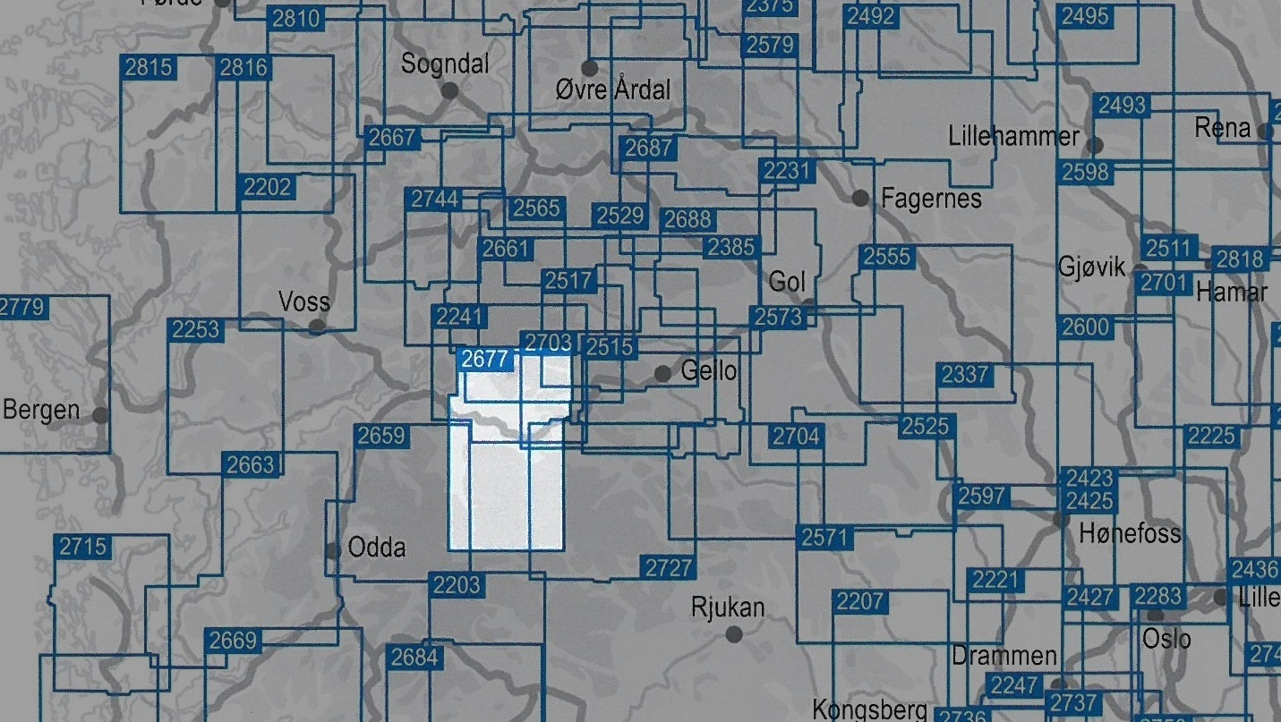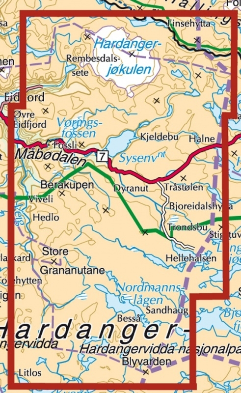 Kaarten en gidsen > Wandelen > Wandelkaarten > Europa > Scandinavië (& Noordpool) > Noorwegen > Zuid-Noorwegen > DNT-2677 Eidfjord | topografische wandelkaart 1:50.000