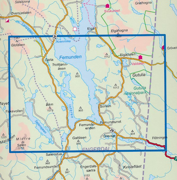 Kaarten en gidsen > Wandelen > Wandelkaarten > Europa > Scandinavië (& Noordpool) > Noorwegen > Midden-Noorwegen > DNT-2722 Femunden Sør | topografische wandelkaart 1:50.000