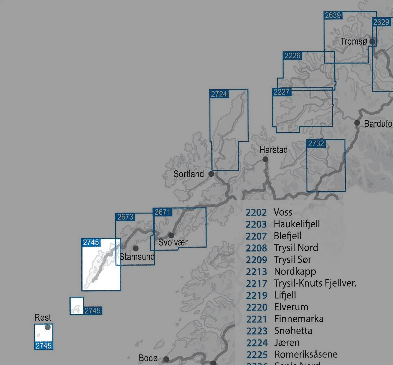 Kaarten en gidsen > Wandelen > Wandelkaarten > Europa > Scandinavië (& Noordpool) > Noorwegen > Lofoten en Vesterålen > DNT-2745 Vest-Lofoten | topografische wandelkaart 1:50.000
