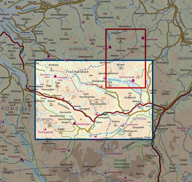 Kaarten en gidsen > Wandelen > Wandelkaarten > Europa > Scandinavië (& Noordpool) > Noorwegen > Midden-Noorwegen > DNT-2828 Trollheimen Sor | topografische wandelkaart 1:50.000