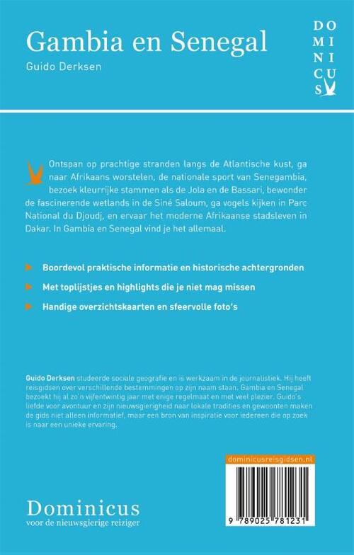 Ontdek Gambia en Senegal op vakantie met deze Dominicus-reisgids en verken twee unieke Afrikaanse landen. Gambia staat bekend om haar prachtige Atlantische kust en vriendelijke bevolking. Verken 'The Smiling Coast', het prachtige en sfeervolle vissersdorp Tanji en het unieke kunstdorp Wide Open Walls. Senegal is een trotse West-Afrikaanse natie vol kleurrijke stammen als de Jola en de Bassari en vol unieke en bruisende steden als Dakar. Ook de prachtige nationale parken zijn een onmisbare bezienswaardigheid. Deze reisgids zit bomvol praktische informatie, handige overzichtskaarten, sfeervolle foto's, historische achtergronden en uitgebreide culturele achtergrondinformatie. Bovendien zijn Dominicus-reisgidsen altijd up-to-date en geschreven door Nederlandstalige experts.