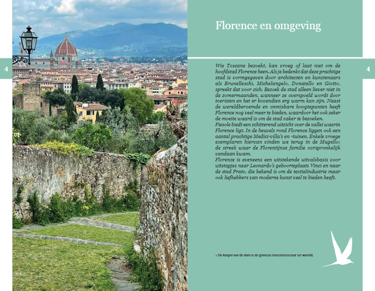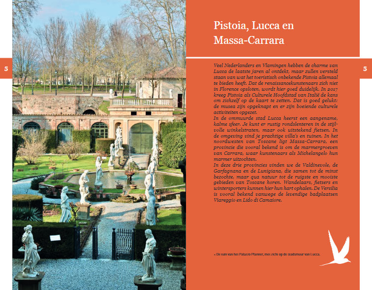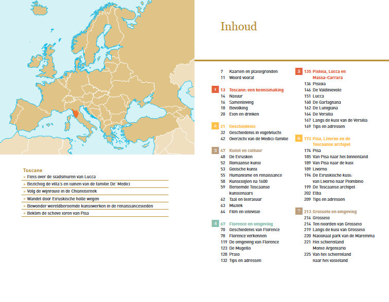 Wandel door Etruskische holle wegen, neem een bad in een warmwaterbron aan de voet van een uitgedoofde vulkaan en bewonder wereldberoemde kunstwerken in de renaissancesteden. Bezichtig de villa's en tuinen van de familie De' Medici, maak een tocht door de Val d'Orcia, waar de Toscaanse heuvels zich ontvouwen als de compositie van een schilderij en ga mee op truffeljacht in de Val d'Elsa. Proef van de wijnen in de Chiantistreek, snorkel in het kristalheldere water rond de Toscaanse eilanden, beklim de scheve toren van Pisa en fiets over de stadsmuren van Lucca. In Toscane vind je het allemaal.