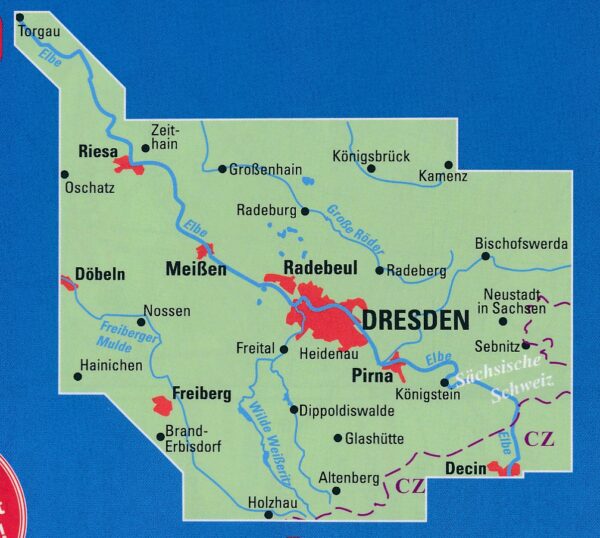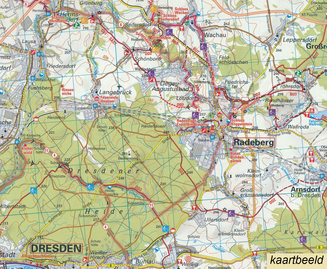 Kaarten en gidsen > Fietsen > Fietskaarten > Europa > Duitsland > Oost-Duitsland > Sachsen > Sächsische Schweiz, Elbsandsteingebirge, Erzgebirge > Dresden & omgeving | fietskaart 1:75.000