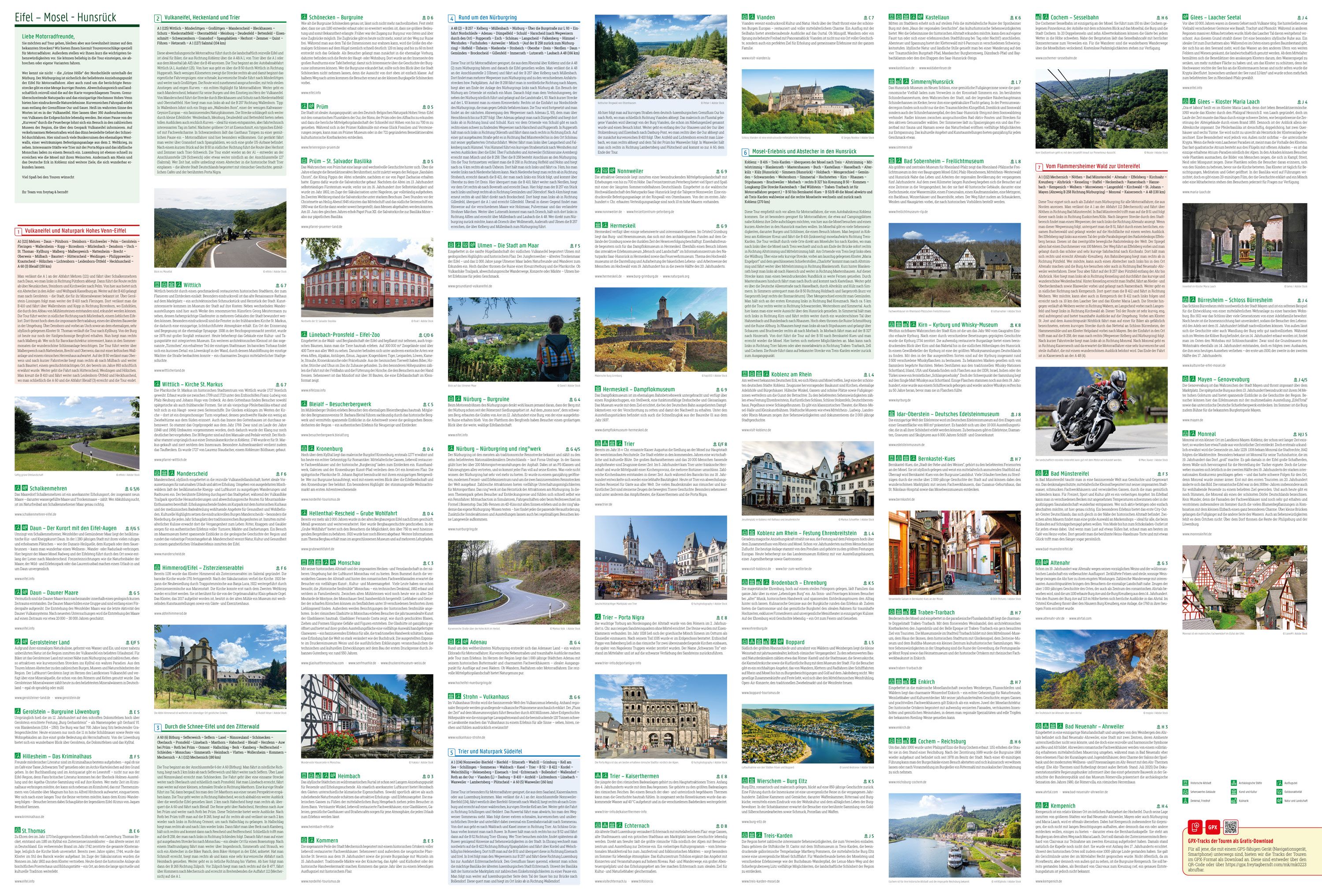 Geplastificeerde wegenkaart, speciaal voor motorrijders. Met routevoorstellen, toeristische bestemmingen, horecatips, Bevat ook details voor GPS-gebruikers. |