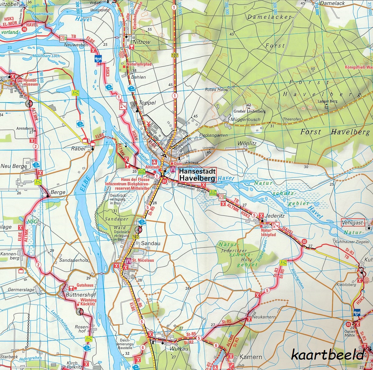 Door ADFC aanbevolen topografische fietskaarten van populaire regio's in Duitsland met details van routes, verkeersintensiteit zodat u de rustigste route kunt kiezen, details van stijgingspercentages, campings en toeristische informatie. Met deze kaarten kunt u een route uitstippelen naar ieders smaak, of het nu voor het gezin is of voor mountainbikers. Mooi kaartbeeld, heel gedetailleerd en scheur- en watervast.