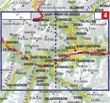 Kaarten en gidsen > Wandelen > Wandelkaarten > Europa > Zuid-Europa / Middellandse Zee > Italië > Noord-Italië > Aosta, Gran Paradiso > ESC-04 Conca di Aosta, Mont Emilius | wandelkaart 1:25.000