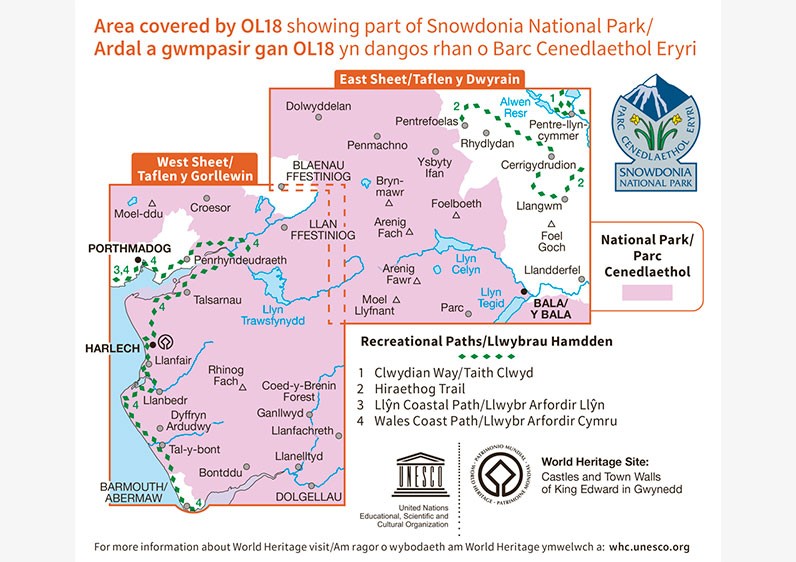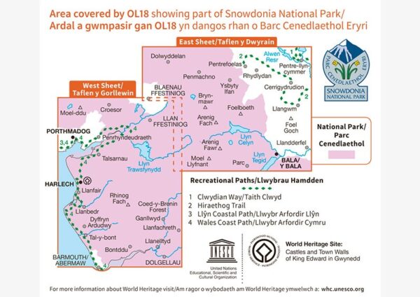 Kaarten en gidsen > Wandelen > Wandelkaarten > Europa > Britse Eilanden > Groot-Brittannië > Wales > Noord-Wales, Anglesey, Snowdonia > EXP-018 Snowdonia, Harlech, Bala Areas | wandelkaart 1:25.000