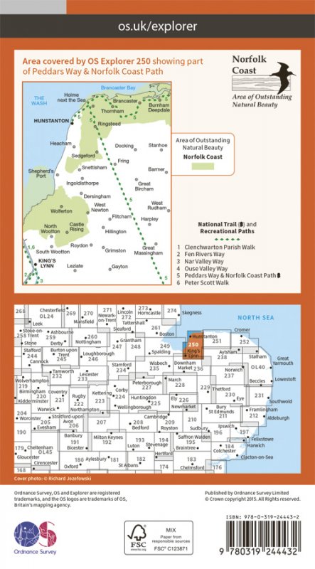 Kaarten en gidsen > Wandelen > Wandelkaarten > Europa > Britse Eilanden > Groot-Brittannië > Engeland > Oost-Engeland > EXP-250 Norfolk Coast West | wandelkaart 1:25.000