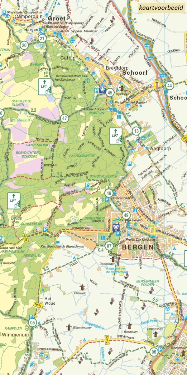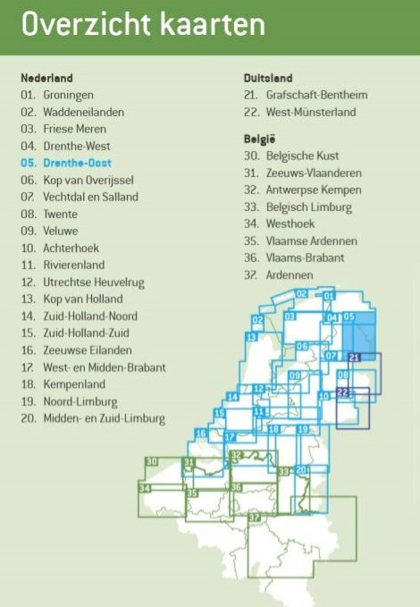Deel uit een serie aaneensluitende gedetailleerde fietskaarten (1:50.000), over geheel Nederland en Vlaanderen.