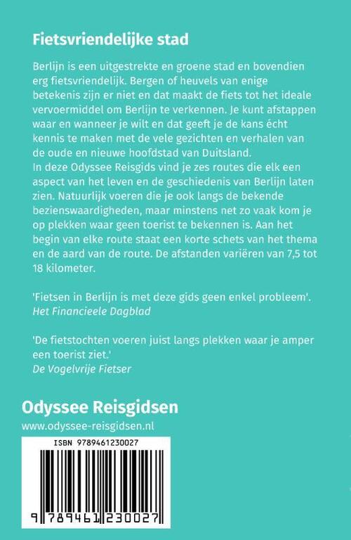 Berlijn is een uitgestrekte en groene stad en bovendien erg fietsvriendelijk. Bergen of heuvels van enige betekenis zijn er niet en dat maakt de fiets tot het ideale vervoermiddel om Berlijn te verkennen. Je kunt afstappen waar en wanneer je wilt en dat geeft je de kans écht kennis te maken met de vele gezichten en verhalen van de oude en nieuwe hoofdstad van Duitsland. In deze nieuwe Odyssee Reisgids vind je zes routes die elk een aspect van het leven en de geschiedenis van Berlijn laten zien. Natuurlijk voeren die je ook langs de bekende bekennen is. Aan het begin van elke route staat een korte schets van het thema en de aard van de route. De afstanden variëren van 7,5 tot 18 kilometer. Dat lijkt misschien niet veel, maar doordat je vaak afstapt, hier en daar een terrasje pakt of even lekker door een park of bezienswaardigheid wilt slenteren, kun je er uren over doen.