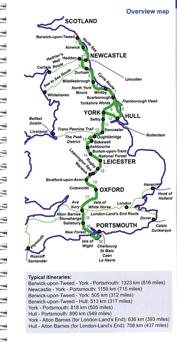 De fietsgids England North-South Cycle Route verbindt de grens van Schotland met het Isle of Wight aan de zuidkust. De niet eerder beschreven Noordzeefietsroute tussen Newcastle en Hull maakt ook deel uit van de route.