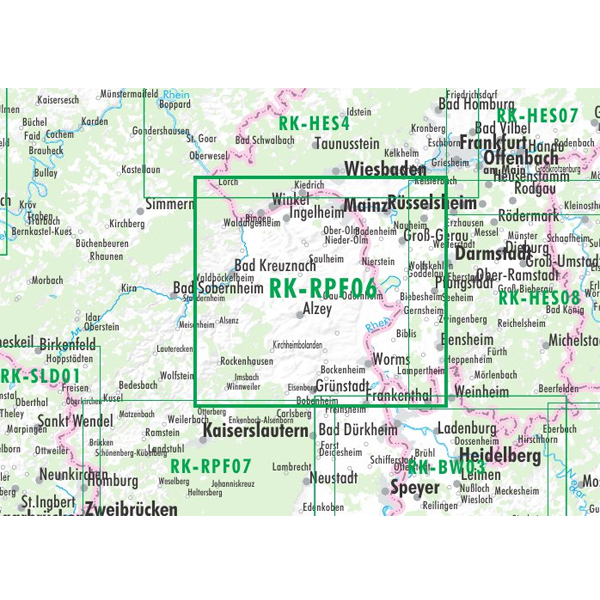 Kaarten en gidsen > Fietsen > Fietskaarten > Europa > Duitsland > West-Duitsland > Rheinland-Pfalz (met Eifel) > Pfalz, Deutsche Weinstrasse, Rheinhessen > fietskaart Rheinhessen, 1:75.000 (RPF06)
