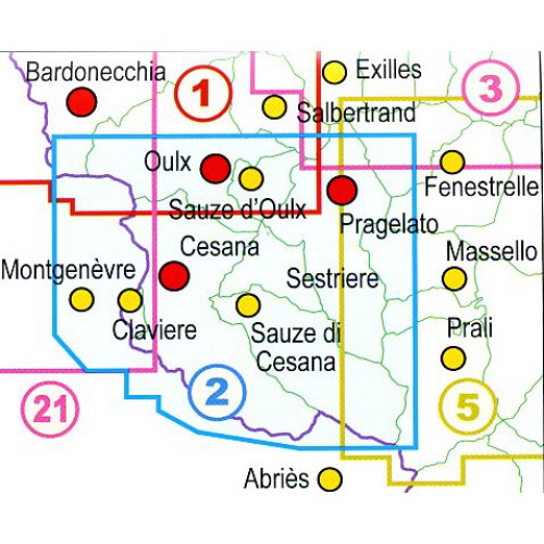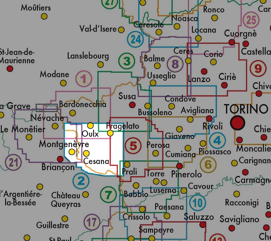 | Gebied | Cesana, Claviere, Sestriere, Sauze di Cesana, Pragelato, Usseaux, Sauze d'Oulx, Oulx, Montgenèvre |