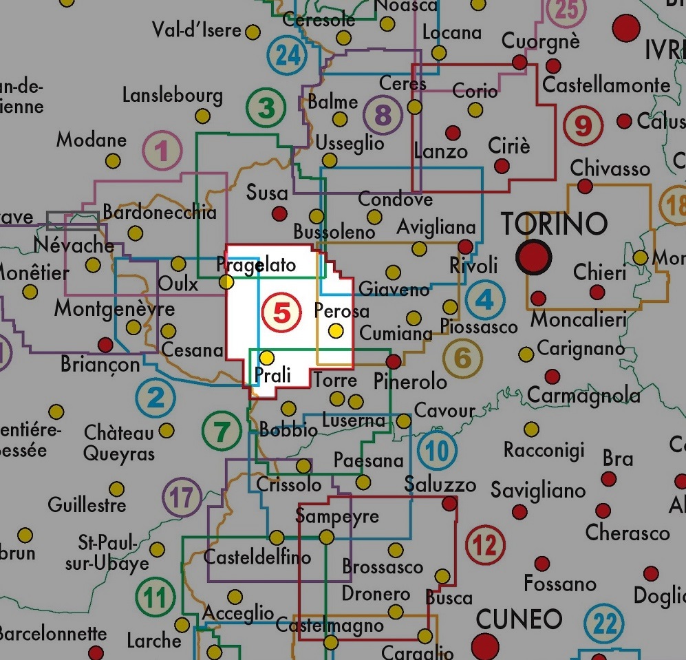 Kaarten en gidsen > Wandelen > Wandelkaarten > Europa > Zuid-Europa / Middellandse Zee > Italië > Noord-Italië > Turijn, Piemonte > FRA-05 Val Germanasca Val Chisone | wandelkaart 1:25.000