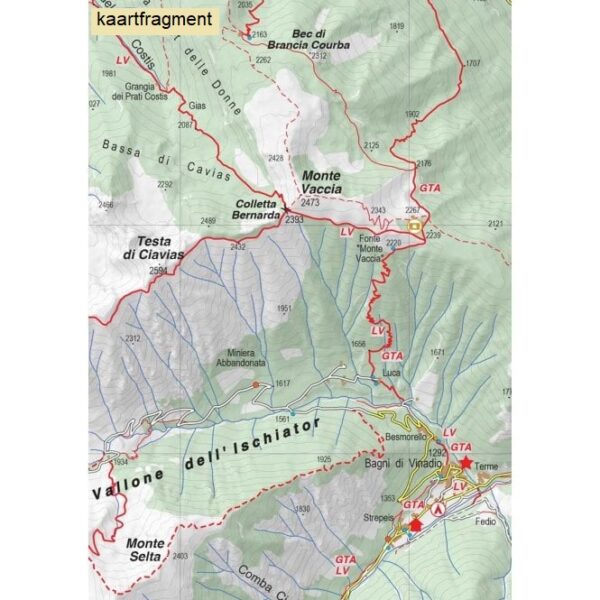 De kaartlegenda en algemene informatie wordt gepresenteerd in het Italiaans, Duits en Engels.