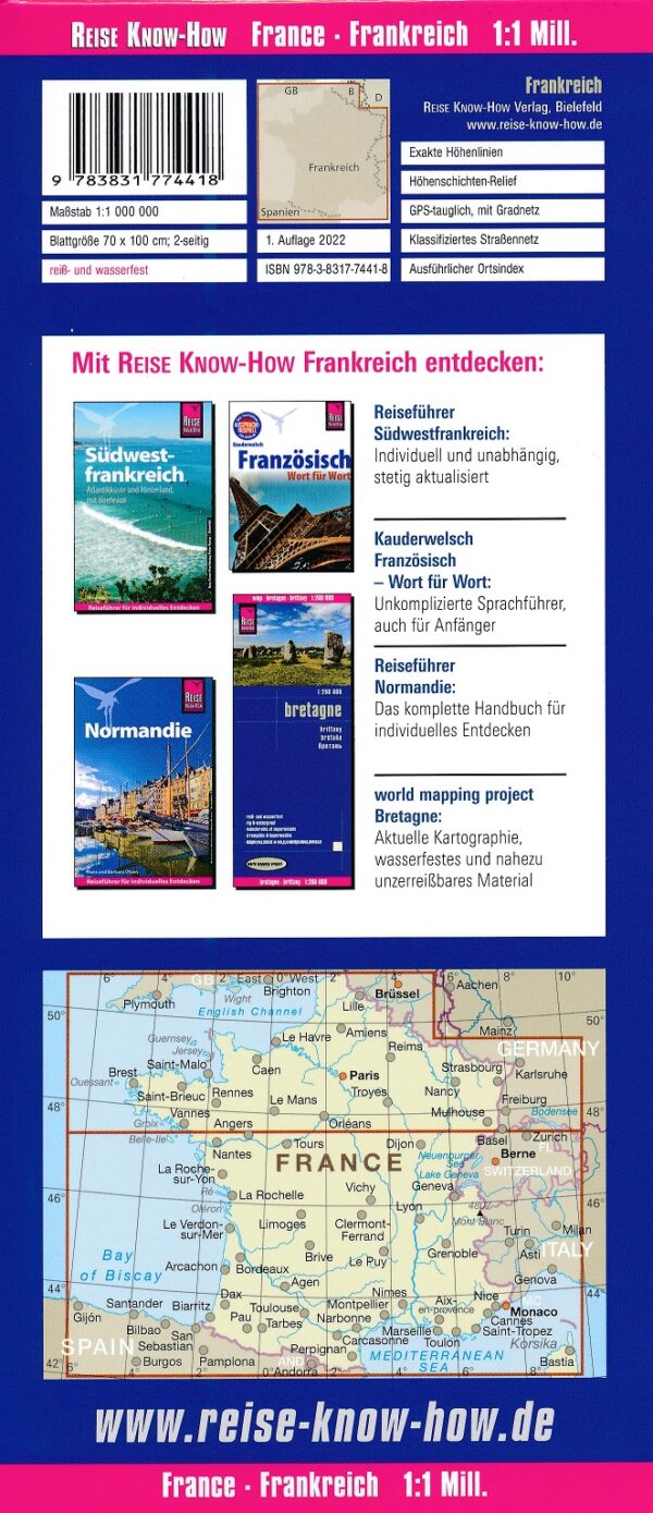 Frankrijk landkaart, wegenkaart 1:1.000.000