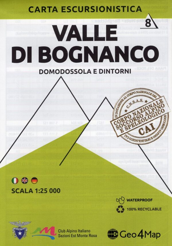 Kaarten en gidsen > Wandelen > Wandelkaarten > Europa > Zuid-Europa / Middellandse Zee > Italië > Noord-Italië > Turijn, Piemonte > G4M-08 Valle di Bognanco | wandelkaart 1:25.000
