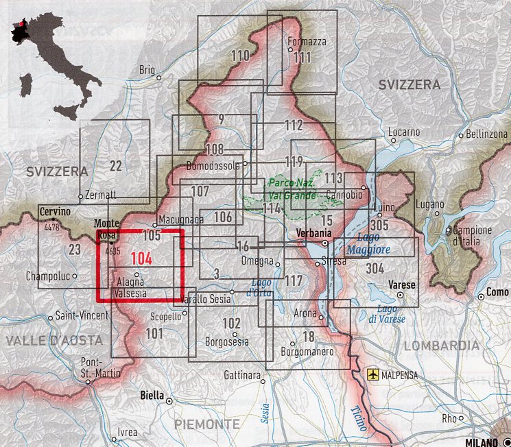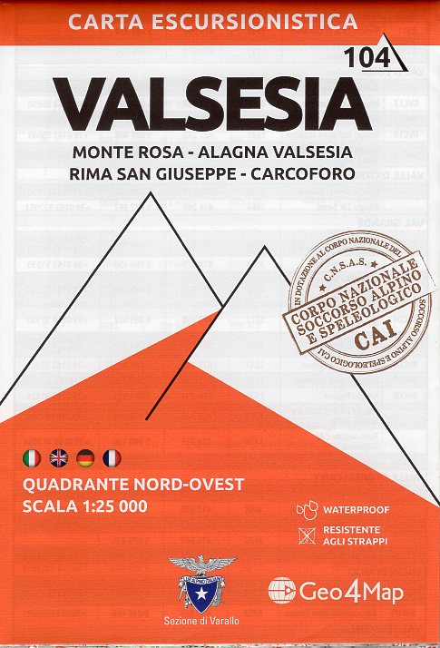 Kaarten en gidsen > Wandelen > Wandelkaarten > Europa > Zuid-Europa / Middellandse Zee > Italië > Noord-Italië > Turijn, Piemonte > G4M-104 Valsesia (noord-west) | wandelkaart 1:25.000