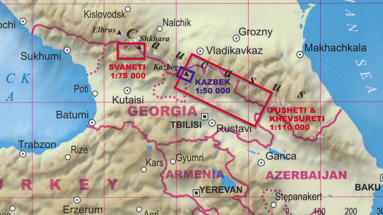 | Gebied | Kazbek 1:50.000, Svaneti 1:75.000, Tusheti Khevsureti 1:110.000 |