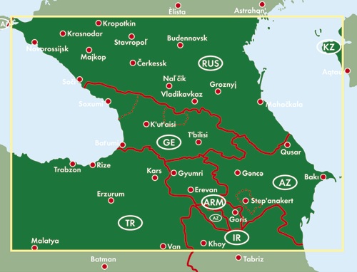 Kaarten en gidsen > Kaarten & plattegronden > Landkaarten en wegenkaarten > Azië > Nabije Oosten en Centraal-Azië > Kaukasus > Georgie/ Armenie/ Azerbaidzjan | autokaart, wegenkaart 1:700.000