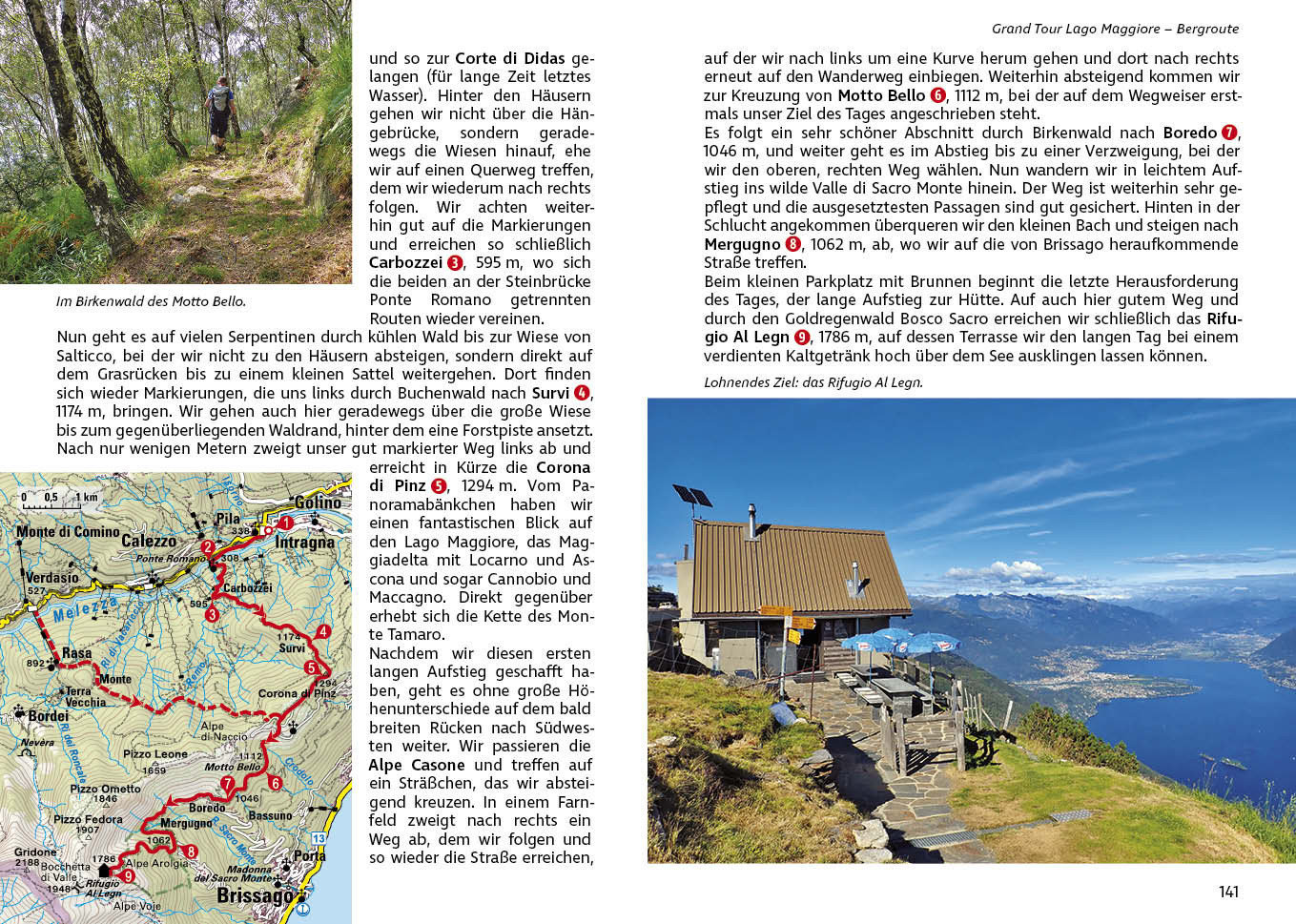Alle Etappen der Grand Tour Lago Maggiore und der Grand Tour Lago d'Orta werden umfassend und übersichtlich beschrieben: Zuverlässige Webeschreibungen, Kartenausschnitte mit Routenverlauf, Höhenprofile und Infos zu Infrastruktur, Übernachtung und Einkehr machen Planung und Durchführung einfach. Geprüfte GPS-Tracks, die zum Download bereitstehen, erleichtern die Orientierung.