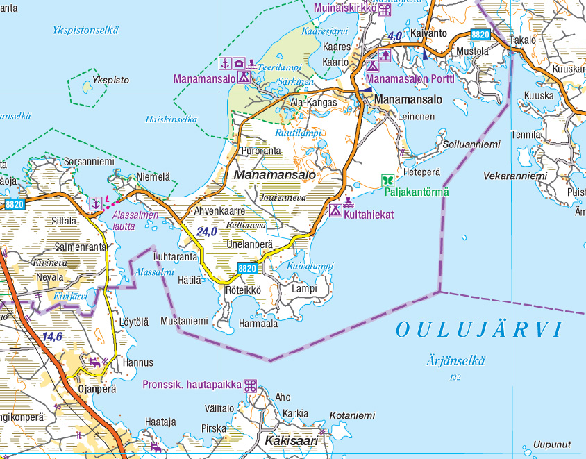 Heel Finland is verdeeld in vier GT-wegenkaarten.Grote, dubbelzijdige kaartenbestrijken een groot gebied, uitermate geschikt voor de routeplanning. Zuid-, West- en Oost-Finland zijn op een schaal van1: 250.000 en de Noord-Finland op schaal 1: 400 000. De kaarten tonen alle wegen met hun classificatie, evenals wegnummers en afstanden en geven bovendien veel landschappelijke details. Incl. handige symbolen voor pompstations, toeristische bezienswaardigheden e.d.