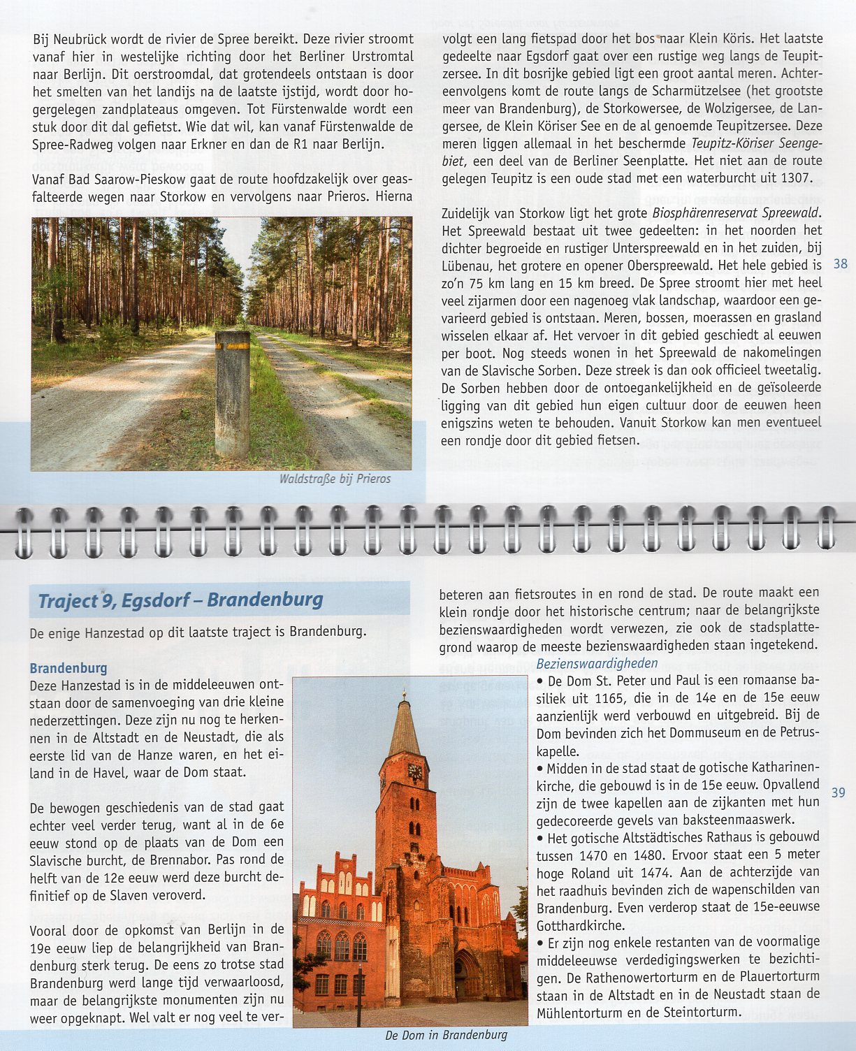 Dit tweede deel van de Hanzefietsroute gaat van Lübeck naar Brandenburg via een groot aantal Hanzesteden in Noord- en Oost-Duitsland. Deze nagenoeg vlakke route is zo'n 1000 km lang en voert daarvan zo'n 400 km langs de Oostzee.De route gaat o.a. over de klifkusten (steilküste) en langs de stranden van de Oostzee, over de schiereilanden Fischland, Darß en Zingst in het Nationale Park Vorpommersche Boddenlandschaft, een klein stukje over het eiland Rügen en dwars over het in z'n geheel beschermde eiland Usedom. Het laatste gedeelte gaat achtereenvolgens over de Uckermünder Heide, dwars door de Uckermark met het Biosphärenreservat Schorfheide-Chorin, een stukje langs de grensrivier de Oder, langs de meren in de Gamengrund op het Barnimplateau (met pingoruïnes), door het natuurpark Märkische Schweiz rond Buckow en rondom Berlijn door de bosrijke deelstaat Brandenburg. Routegidsje in spiraalband, met gedetailleerde kaarten, overnachtingsinfo en interessante wetenswaardigheden.