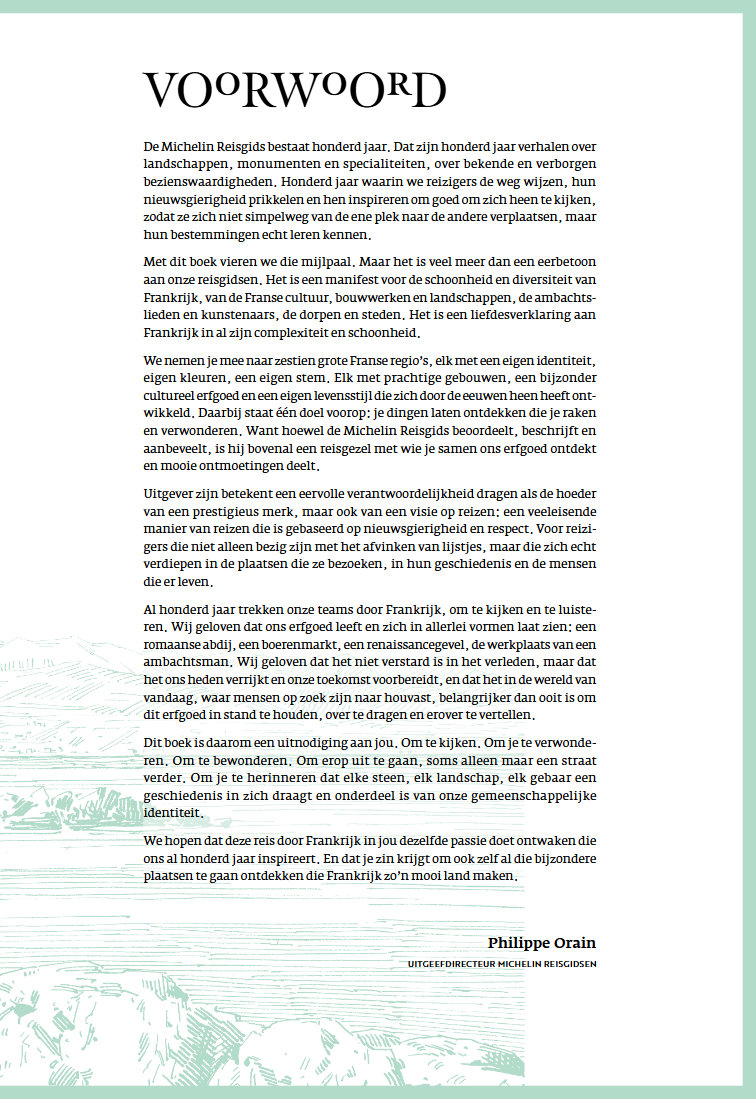 Sinds 1926 doet de Michelin Reisgids het hart van reizigers sneller slaan. Om zijn honderdste verjaardag te vieren neemt Michelin je mee op reis door Frankrijk, van regio naar regio, om de mooiste bezienswaardigheden te ontdekken, van de grote klassiekers tot de best bewaarde geheime plekjes.