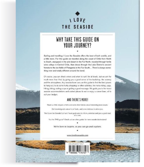 I Love the Seaside, dé reisgidsreeks voor surfers en iedereen die van de kust houdt, neemt je in deze gids mee langs de 5000 kilometer lange kust van Chili. Dwars door verschillende klimaten en landschappen,van het woestijnachtige Norte Grande, levendige surfdorpjes dichtbij hoofdstad Santiago, het groene zuiden tot aan het dunbevolkte Noord Patagonia. De auteurs checkten in bij de leukste adressen,spraken met inspirerende locals, proefden empanadas, logeerden in jaloersmakende cabanas en hadden close encounters met pinguïns en zeeleeuwen. Als ze niet aan het surfen waren, stonden ze op de yogamat, een SUP of maakten een lange hike. The new guide's a 464-page thick beauty, filled to the brim with tips, activities, places to eat, drink, stay, (surf) beaches and bays, scenery descriptions, stunning photos, local food facts, and stories.