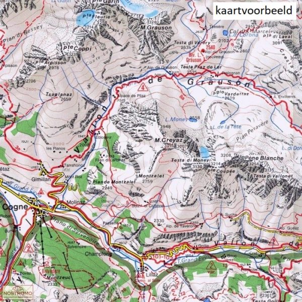 Topografische wandelkaart met ingetekende routes en hutten. Omvat het gebied van: Bra - Bubbio - Channel - Canelli - Corneliano d'Alba - Costigliole d'Asti - Felizzano - Nizza Monferrato - Poirino - Pralormo - San Damiano d'Asti