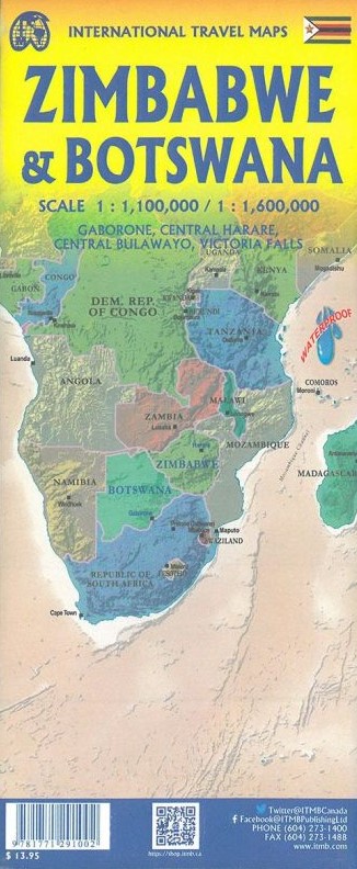 ITM Botswana and Zimbabwe travel map | landkaart, autokaart 1:1.500.000