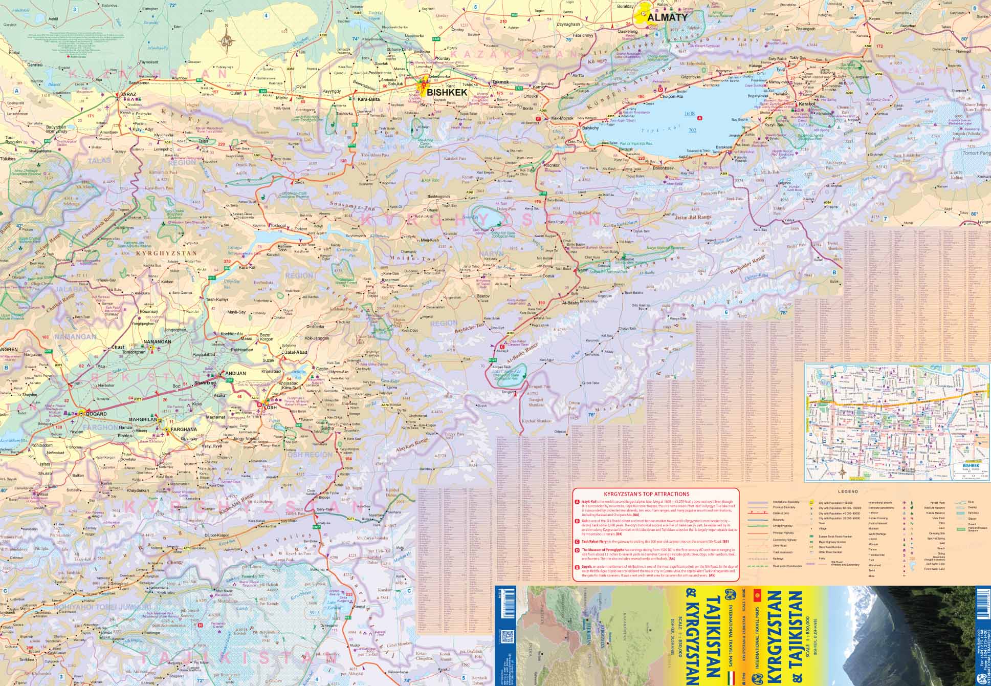 Kaarten en gidsen > Kaarten & plattegronden > Landkaarten en wegenkaarten > Azië > Nabije Oosten en Centraal-Azië > Zijderoute (de landen van de) > ITM Kirgizië / Tadzikistan wegenkaart 1:850.000