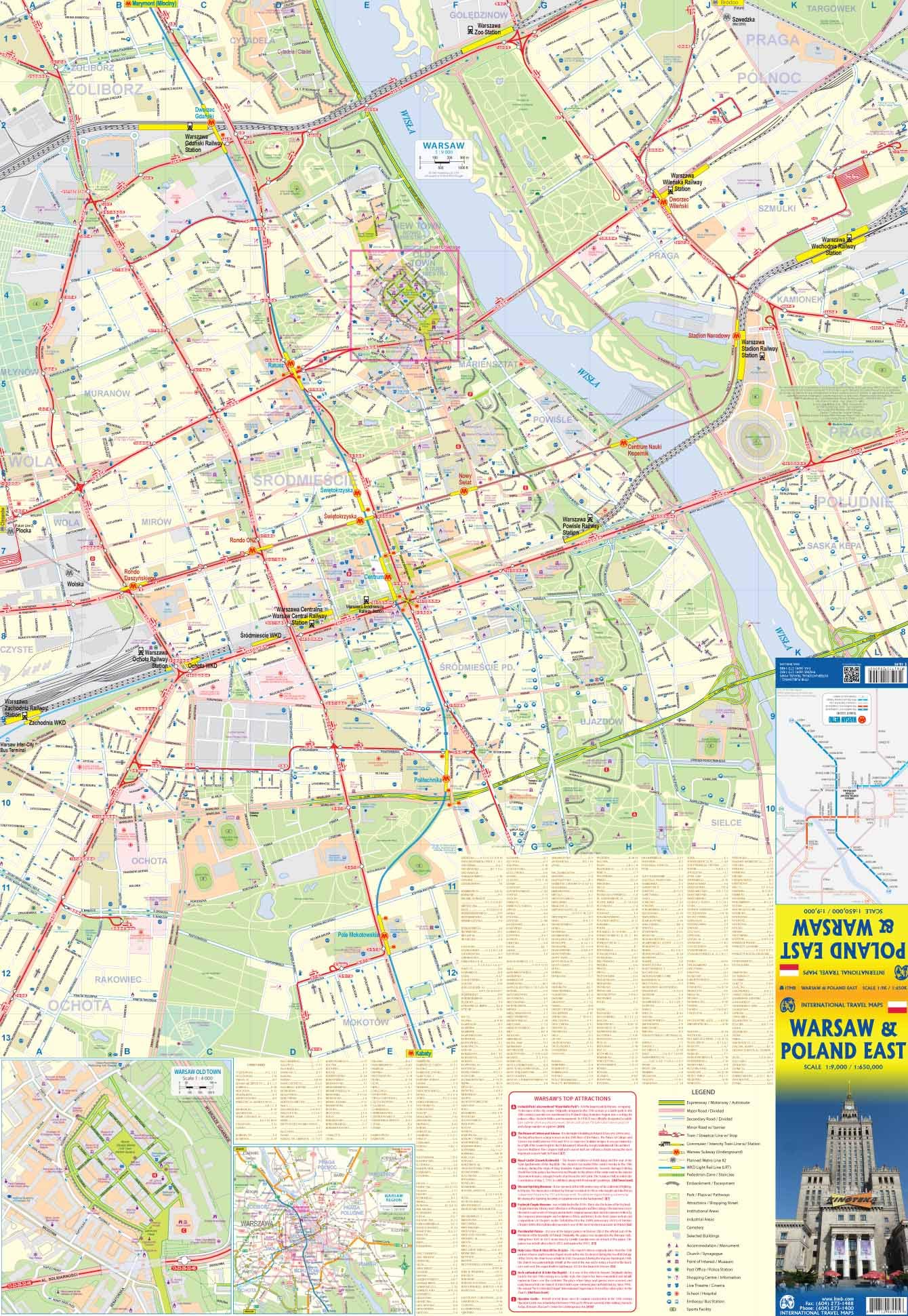 Kaarten en gidsen > Kaarten & plattegronden > Stadsplattegronden > Europa > Centraal- en Oost-Europa, Balkan, Siberië > Polen > Warschau en Midden-Polen > ITM Warschau 1:9000 en Oost-Polen 1:650.000