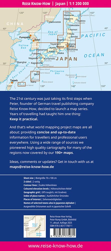 Uitstekende tweezijdig bedrukte wegenkaart / overzichtskaart. Verschenen in de serie van het 'World Mapping Project', van uitgeverij Reise Know How. Met lengte- en breedtegraden (handig voor GPS-gebruik), plaatsnamenindex, hoogtelijnen en enige toeristische informatie. Gedrukt op scheur- en watervast (milieuonschadelijk) materiaal.