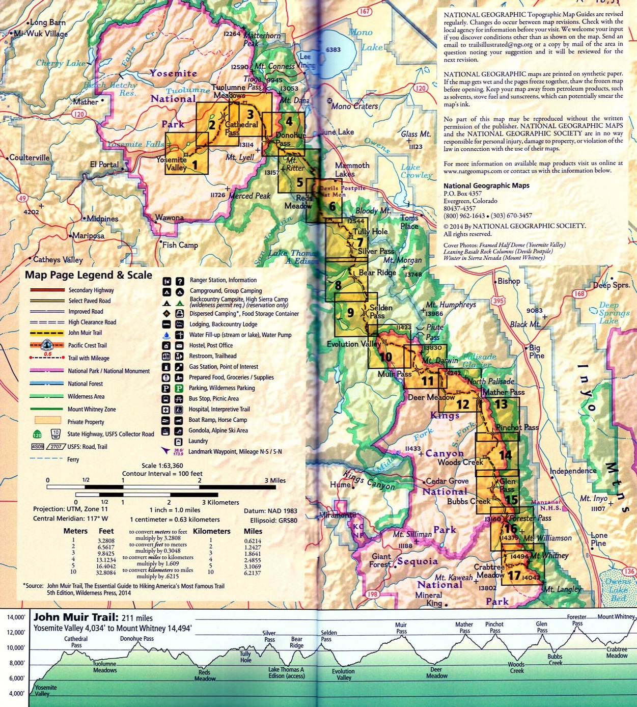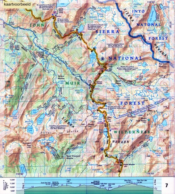 John Muir Trail | atlasje met wandelkaarten 1:63.360