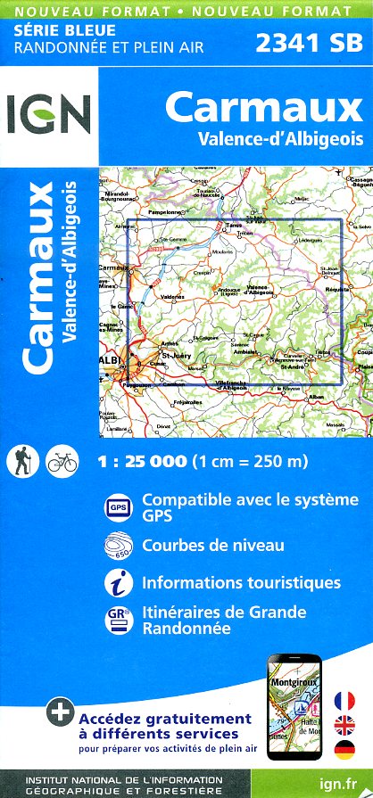 SB-2341 Carmaux | wandelkaart 1:25.000Dit is een deel uit de vernieuwde Série Bleue. Dat zijn zeer gedetailleerde topografische kaarten,direct leverbaar!€16,95 > alles van Europa -