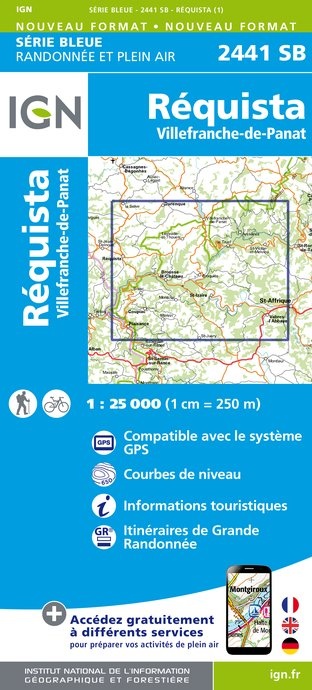 SB-2441 Réquista, Villefranche-de-Panat | wandelkaart 1:25.000Dit is een deel uit de vernieuwde Série Bleue. Dat zijn zeer gedetailleerde topografische kaarten,direct leverbaar!€16,95 > alles van Europa -