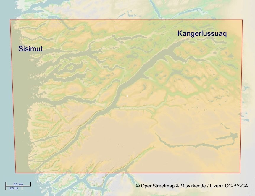 Kaarten en gidsen > Kaarten & plattegronden > Landkaarten en wegenkaarten > Europa > Scandinavië (& Noordpool) > IJsland, Groenland, Faeröer, Spitsbergen, Noordpool > Groenland > Kangerlussuaq - Sisimiut | overzichtskaart 1:250.000