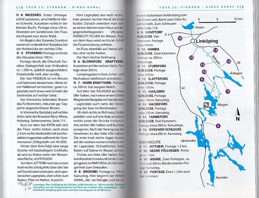 Der unseres Wissens momentan einzige überregionale Schweden-Kanuguide Schweden liegt in aktualisierter dritter Auflage vor. Das Buch enthält 49 Kanugewässer in Süd- und Mittelschweden. Die Touren sind teils miteinander zu kombinieren und teils sogar in mehreren Varianten vertreten, so dass es sich insgesamt um mehr als 50 Strecken zur Auswahl handelt. Zu den vorgestellten Kanurevieren gehören Lagaleden, Tidan, Fegen, Ätran, Glaskogen, Nissan, Båven, Rönne å, Immeln und Halen, Strömsholmskanal, Fuluälven, Tiveden, Ronnebyån, Flottarleden, Bullareleden, Svartälven, Stångån, Veman, Rogen, Ljusnan u.a.