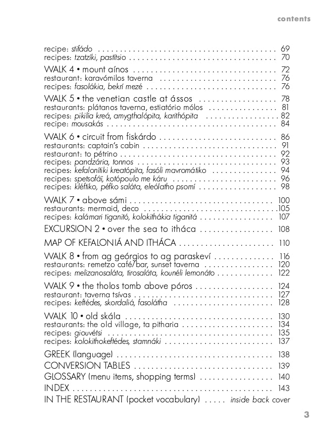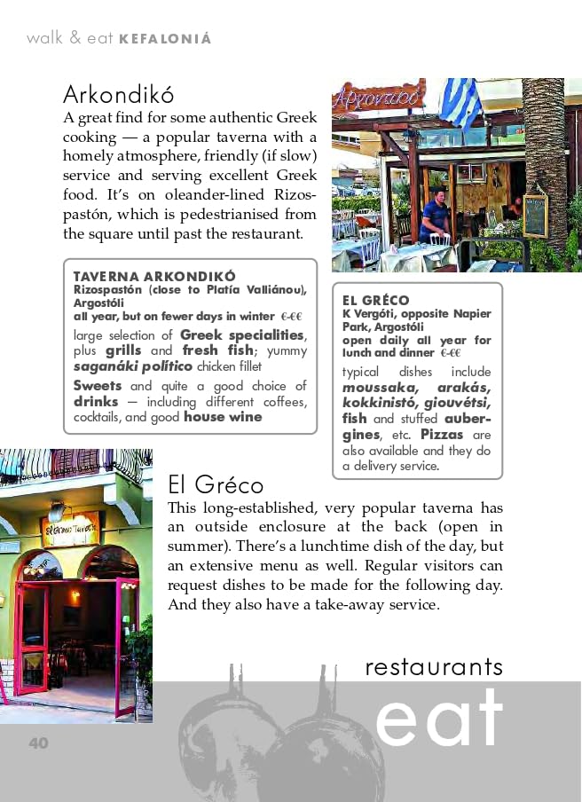 If holidays are about new experiences, then this pocket guide solves two problems -- where to enjoy walking in Kefalonia and where to find some good, traditional food. There are strolls for hot days and longer walks to work up an appetite. And if you're just after some recommendations for where to eat out in Kefalonia, you need look no further! For each suggested restaurant there is a photograph of the décor and one of their dishes, plus sample menu, price guide, opening times, and a recipe for one of their specialities.