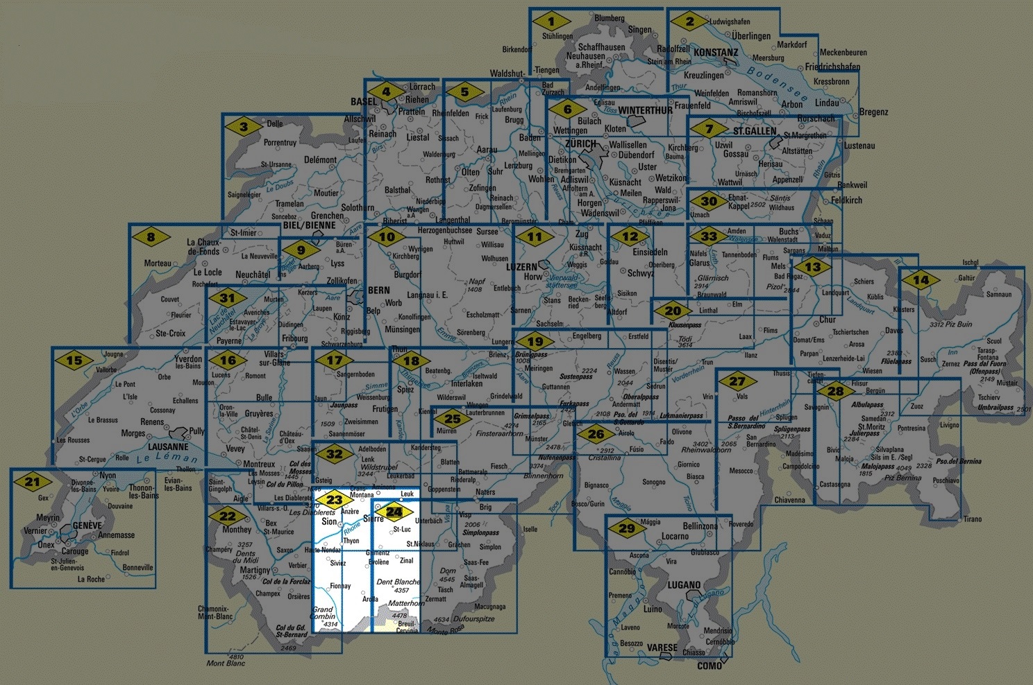 | Gebied | Matterhorn, Dent Blanche, Gr.Combin, Wildstrubel |