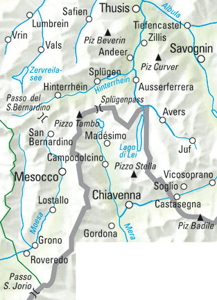 Kaarten en gidsen > Wandelen > Wandelkaarten > Europa > Zwitserland en Oostenrijk (en Alpen als geheel) > Zwitserland > Graubünden > KFW-27 Splügen San Bernardino | wandelkaart / overzichtskaart