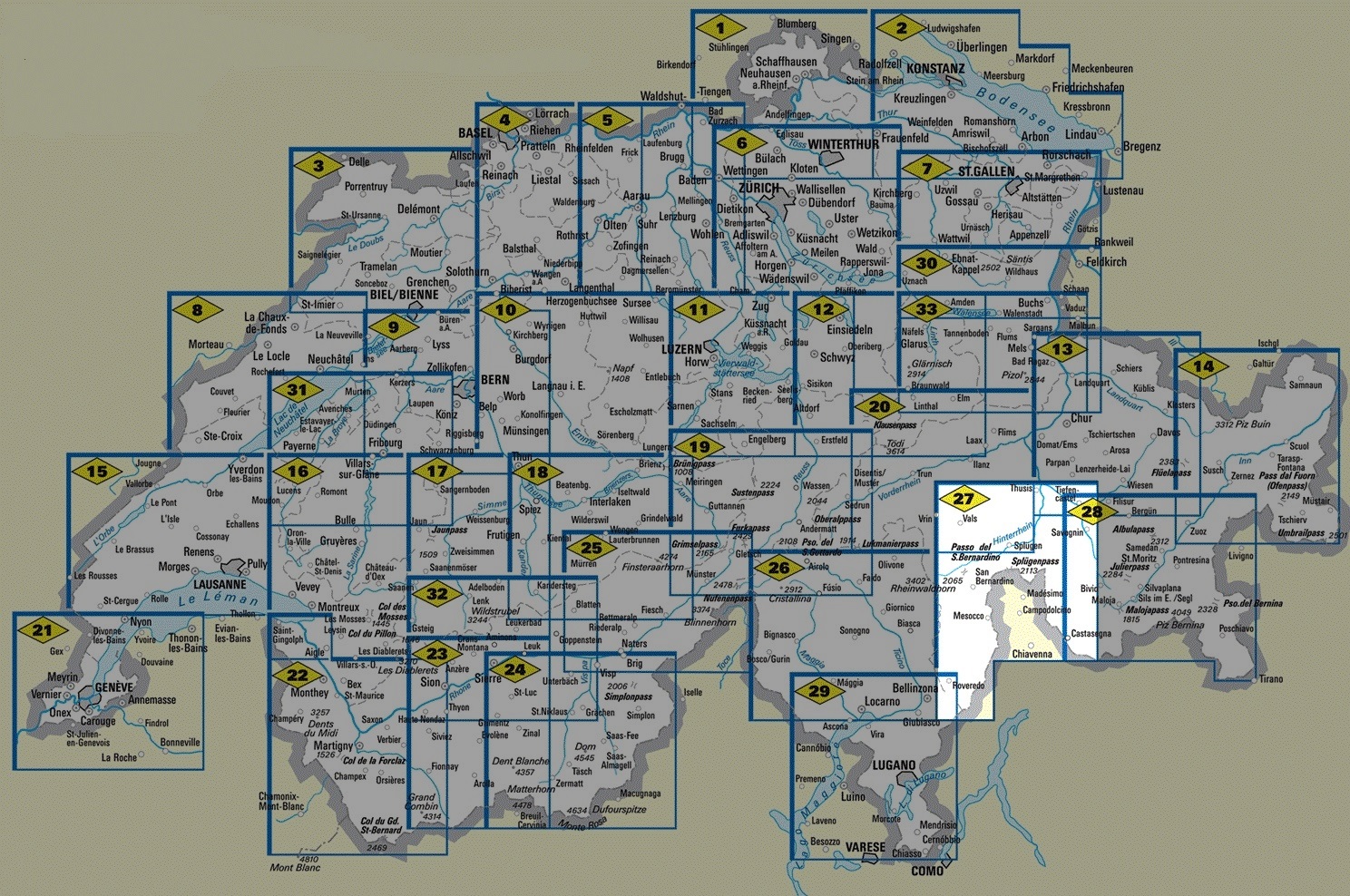 Nauwkeurig gemaakte wandelkaarten (scheur- en watervast), met een heldere en overzichtelijke cartografie. Schaal 1:60.000. Met vele routes (rood ingetekend), waarvan de verschillende moeilijkheidsgraden duidelijk te onderscheiden zijn. Verder aangegeven: berghutten, bushaltes en campings. Bovendien met een coördinatenstelsel voor GPS gebruik. In de praktijk zijn dit uitstekende kaarten voor het plannen van bergtochten en voor het maken van wandelingen over makkelijke en goed gemarkeerde paden. Voor het maken van moeilijker bergwandelingen zijn de kaarten van het Bundesamt (zie elders in deze webwinkel) beter geschikt. Titel maakt deel uit van ons assortiment Wandelkaarten Zwitserland.