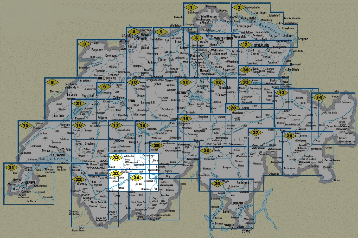 Nauwkeurig gemaakte wandelkaarten (scheur- en watervast), met een heldere en overzichtelijke cartografie. Schaal 1:60.000. Met vele routes (rood ingetekend), waarvan de verschillende moeilijkheidsgraden duidelijk te onderscheiden zijn. Verder aangegeven: berghutten, bushaltes en campings. Bovendien met een coördinatenstelsel voor GPS gebruik. In de praktijk zijn dit uitstekende kaarten voor het plannen van bergtochten en voor het maken van wandelingen over makkelijke en goed gemarkeerde paden. Voor het maken van moeilijker bergwandelingen zijn de kaarten van het Bundesamt (zie elders in deze webwinkel) beter geschikt. Titel maakt deel uit van ons assortiment Wandelkaarten Zwitserland.